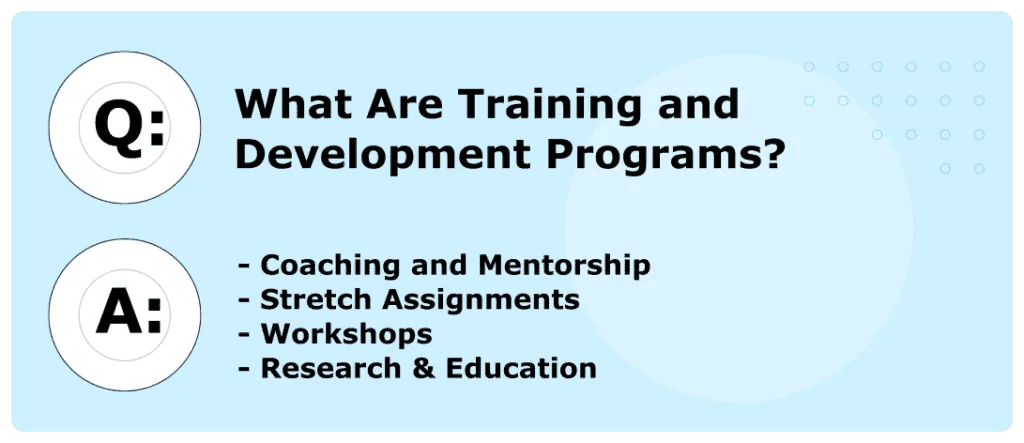 So what might be some examples of training and development programs for employees from the list of programs above?